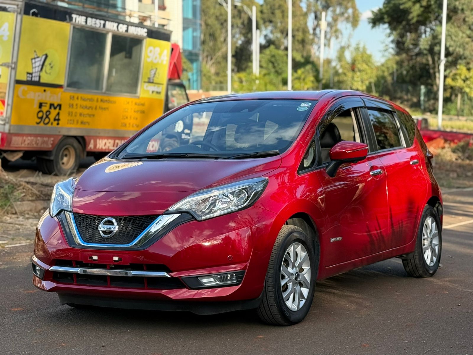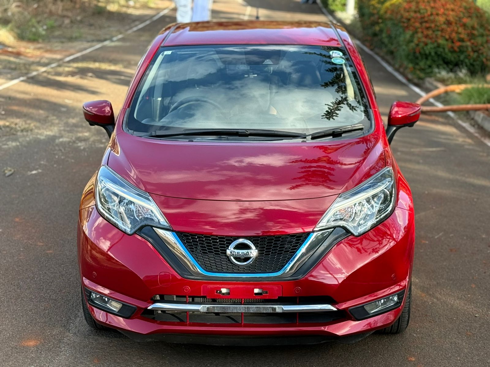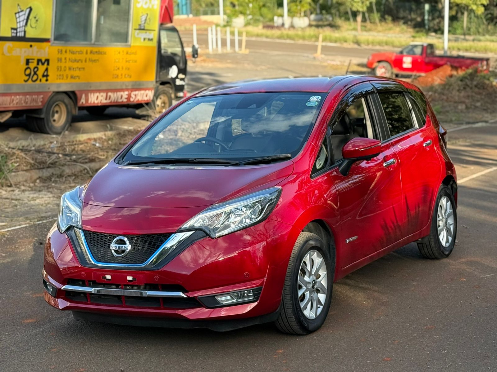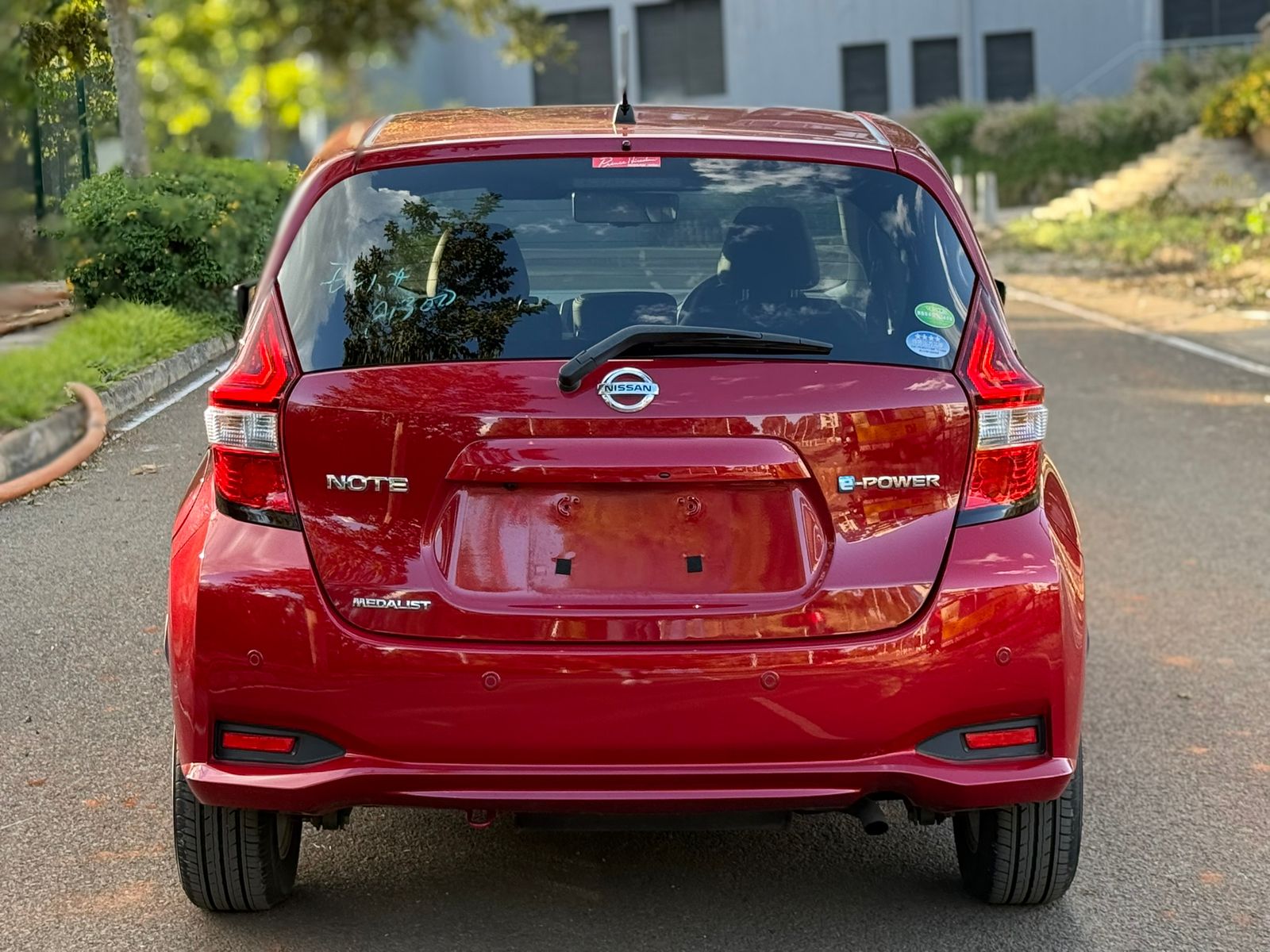 The 2018 Nissan Note Medalist E-Power in red is a hybrid subcompact hatchback powered by a 1.2L petrol engine paired with an electric motor system that drives the wheels fully electrically. It has 82,000 kilometers and offers a highly efficient and smooth driving experience, combining the benefits of electric propulsion with petrol engine battery charging. This model features a half-leather interior, advanced safety systems, and modern technology to deliver convenience and security.