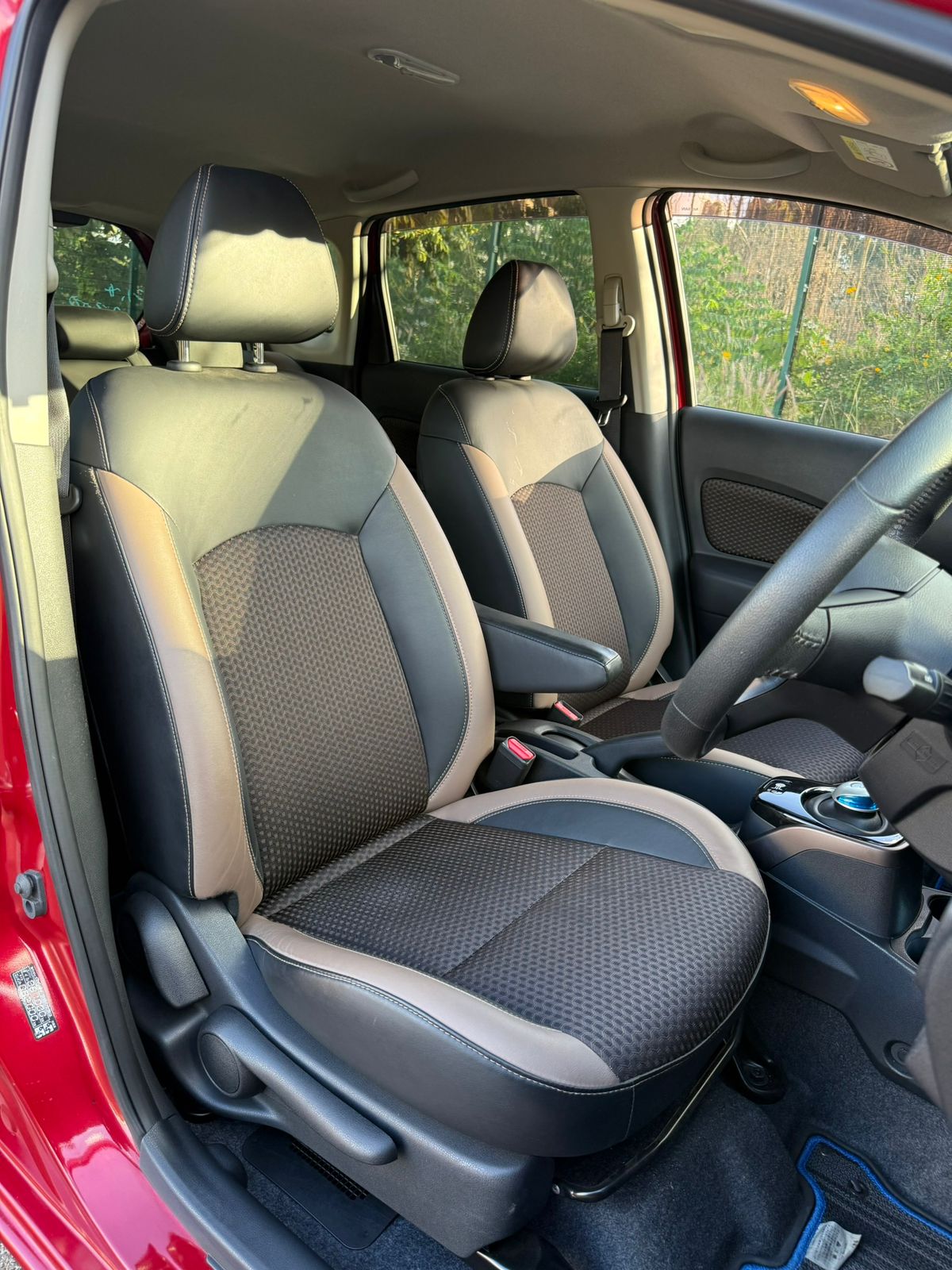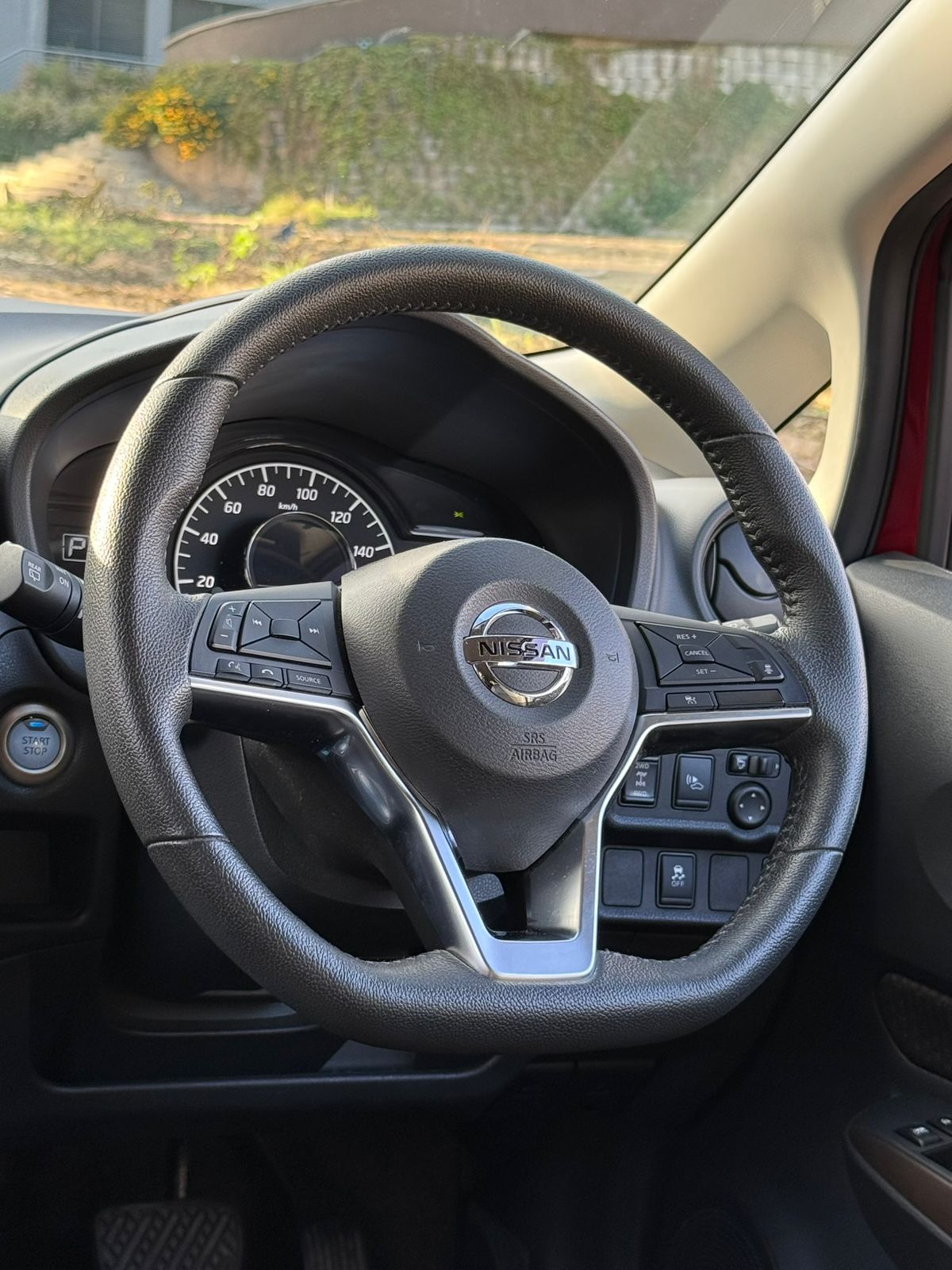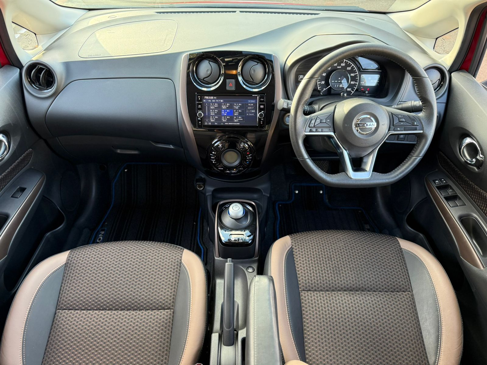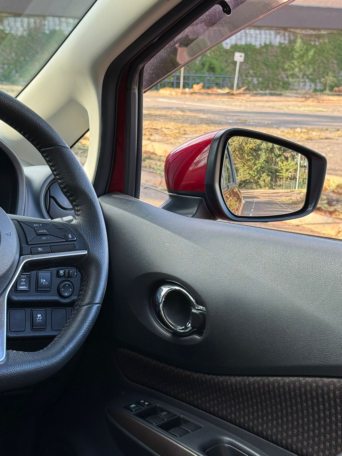 The 2018 Nissan Note Medalist E-Power in red is a hybrid subcompact hatchback powered by a 1.2L petrol engine paired with an electric motor system that drives the wheels fully electrically. It has 82,000 kilometers and offers a highly efficient and smooth driving experience, combining the benefits of electric propulsion with petrol engine battery charging. This model features a half-leather interior, advanced safety systems, and modern technology to deliver convenience and security.