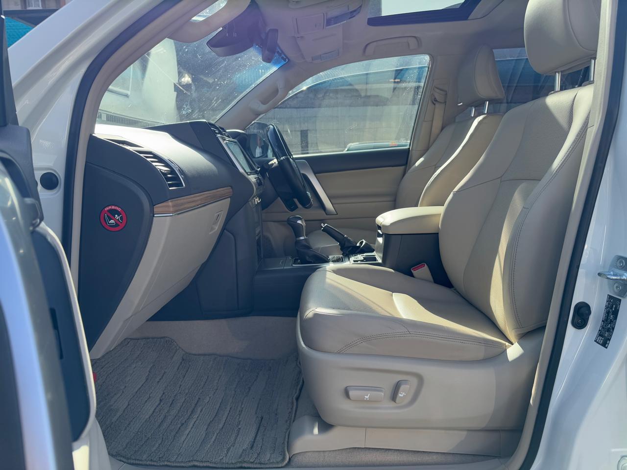 The 2018 Toyota Land Cruiser Prado TXL features a 2.8L turbocharged diesel engine, 6-speed automatic transmission, full-time 4WD, and premium luxury features. It has 40,000 km mileage, 7 black leather seats, electric power seats with heating and cooling, a sunroof, advanced multimedia with a DVD player, front and rear cameras, lane assist, traction control, and parking sensors. Priced around KES 7,500,000.