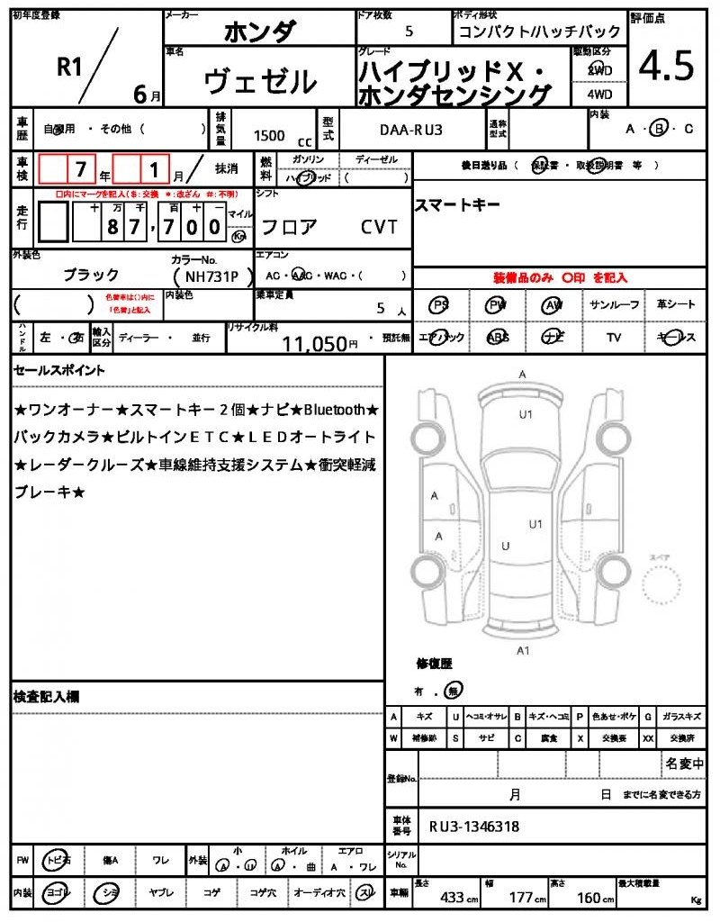 2019 Honda Vezel X Hybrid