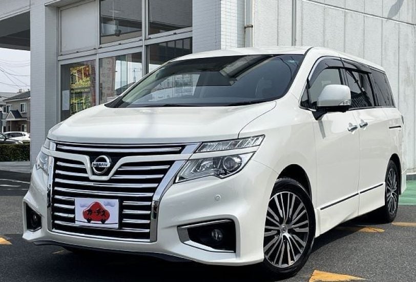 The Elgrand Highway Star's distinctive chrome grille defines premium Japanese minivan luxury.