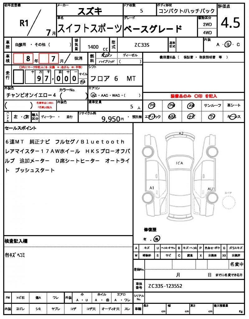 The 2019 Suzuki Swift Sport is a lightweight, agile hot hatch powered by a 1.4L turbocharged petrol engine with a 6-speed manual transmission, delivering spirited performance for urban and highway driving in Kenya. This yellow exterior model with white alloy rally rims and 97,000 km mileage features practical fabric seats and sport-tuned suspension for engaging handling. Its compact size and turbo boost make it ideal for nimble city navigation and fun weekend drives.