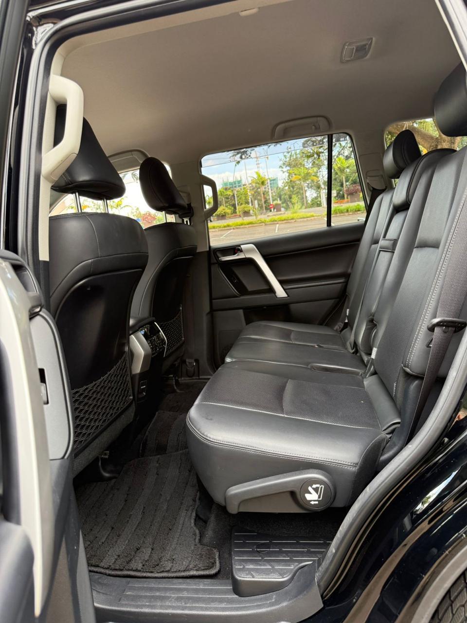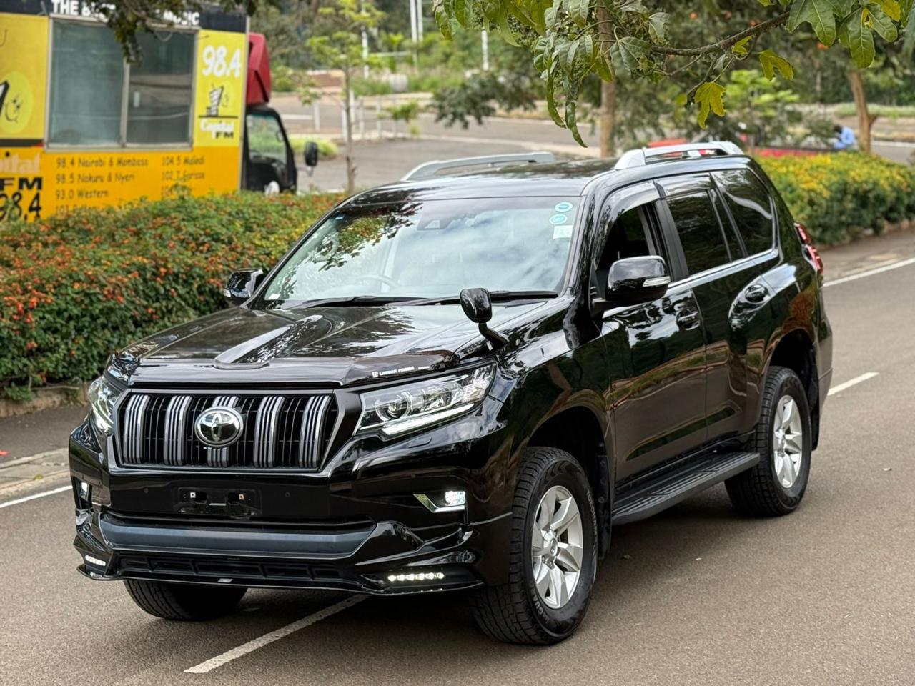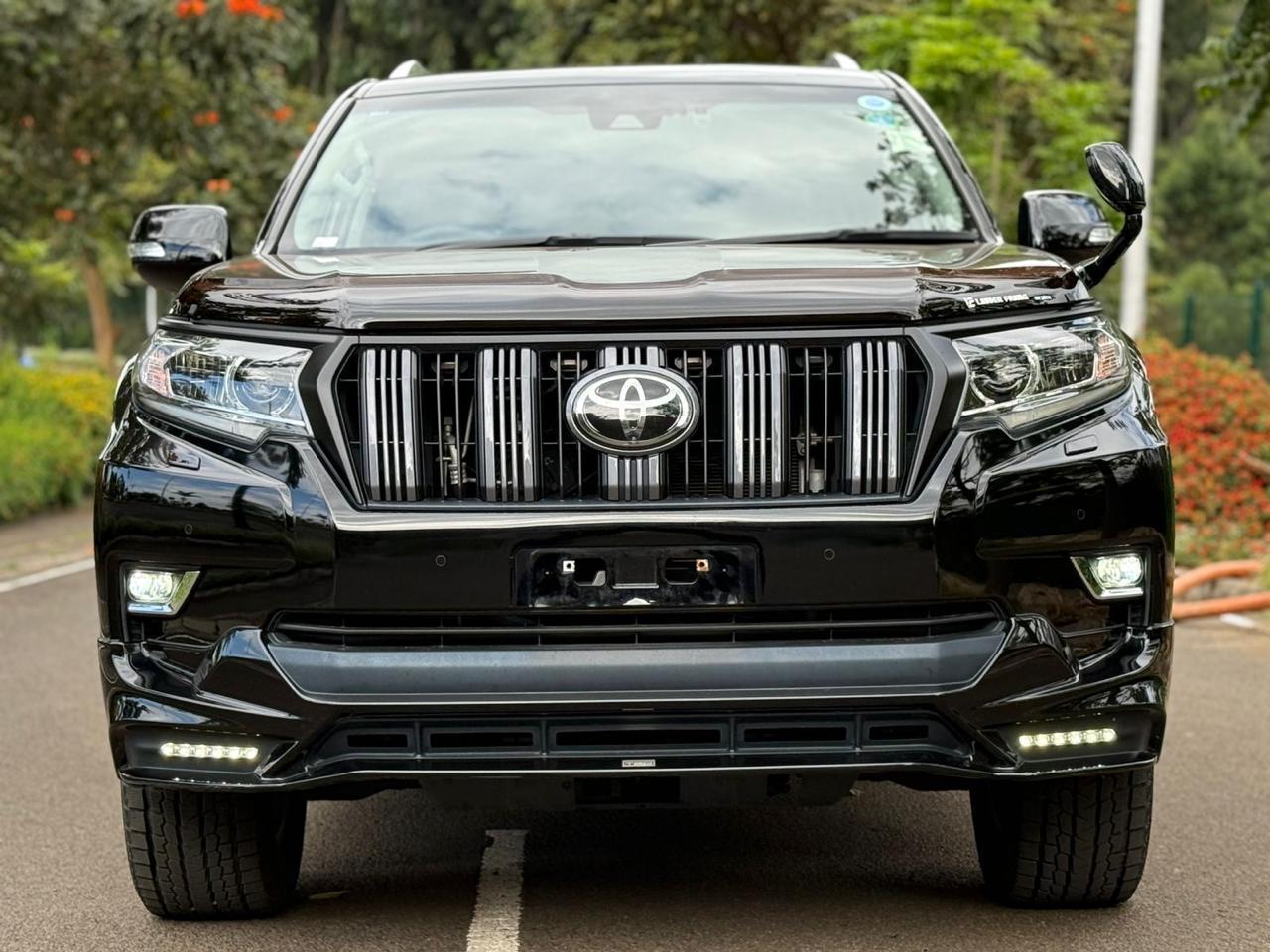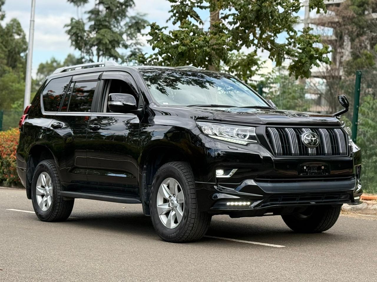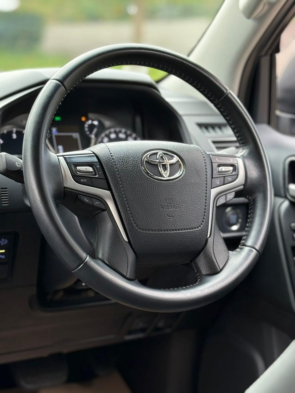 The 2019 Toyota Prado TX-L J150 is a robust and luxurious SUV powered by a 2.8L turbocharged diesel engine. It features 7 black leather seats, advanced safety and convenience features and is suitable for Kenyan terrains with 4WD capability.