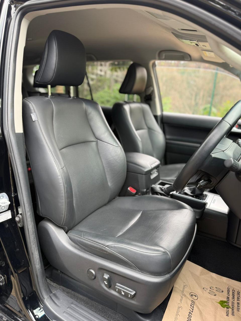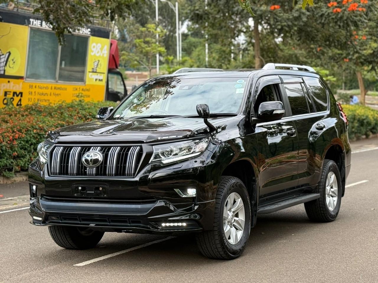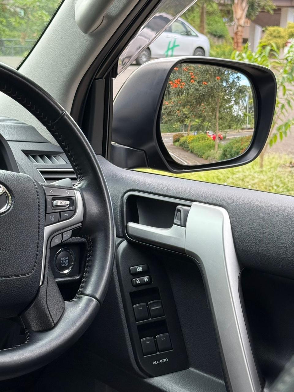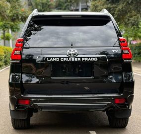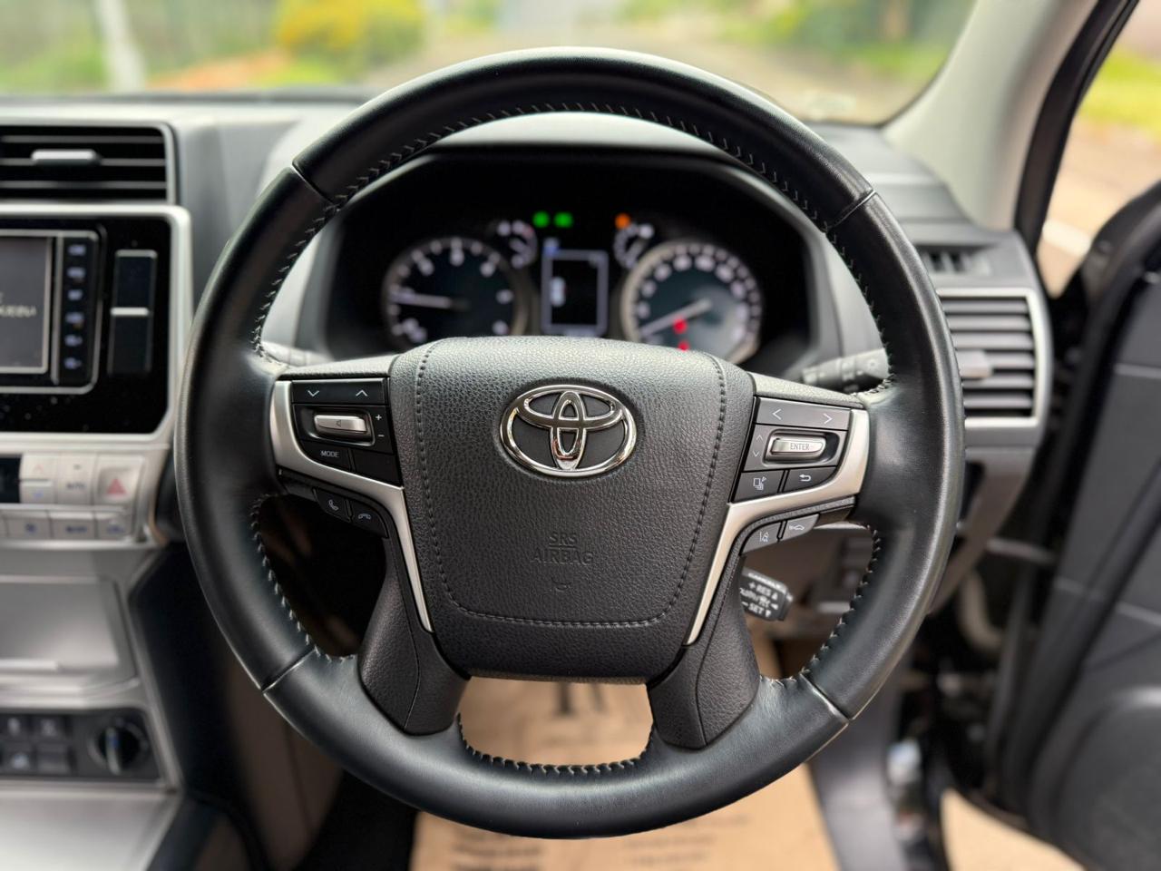 The 2019 Toyota Prado TX-L J150 is a robust and luxurious SUV powered by a 2.8L turbocharged diesel engine. It features 7 black leather seats, advanced safety and convenience features and is suitable for Kenyan terrains with 4WD capability.