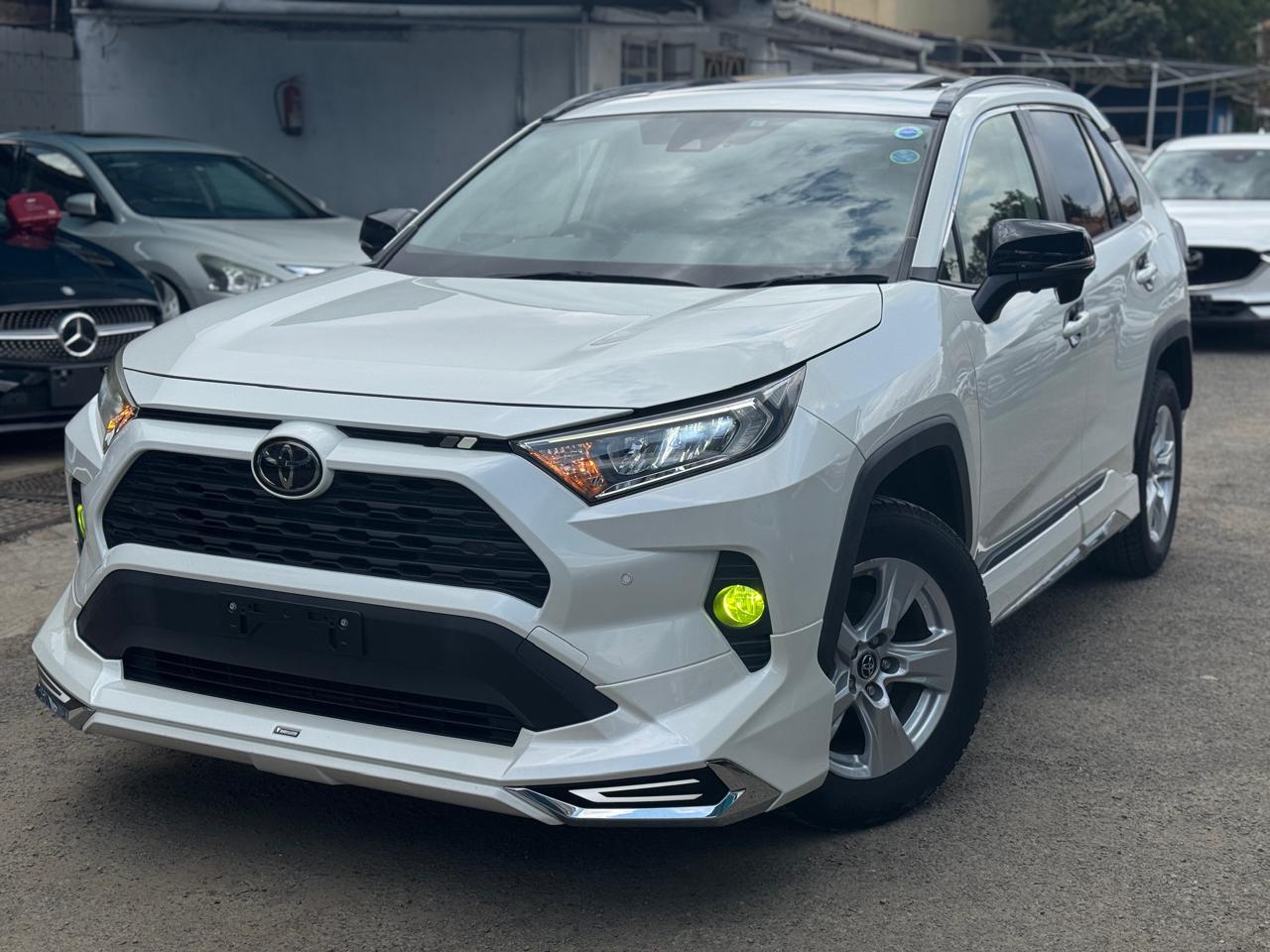 The 2019 Toyota RAV4 is a compact SUV equipped with advanced features, including a sunroof, LED xenon and bumper lights, fog lamps, side and rear cameras, parking sensors, lane assist, traction control, and multiple driving modes (Eco, Normal, Sports). It has 121,000 km mileage, original alloy rims, roof rails, and good tyres, priced at about KES 4.65 million.