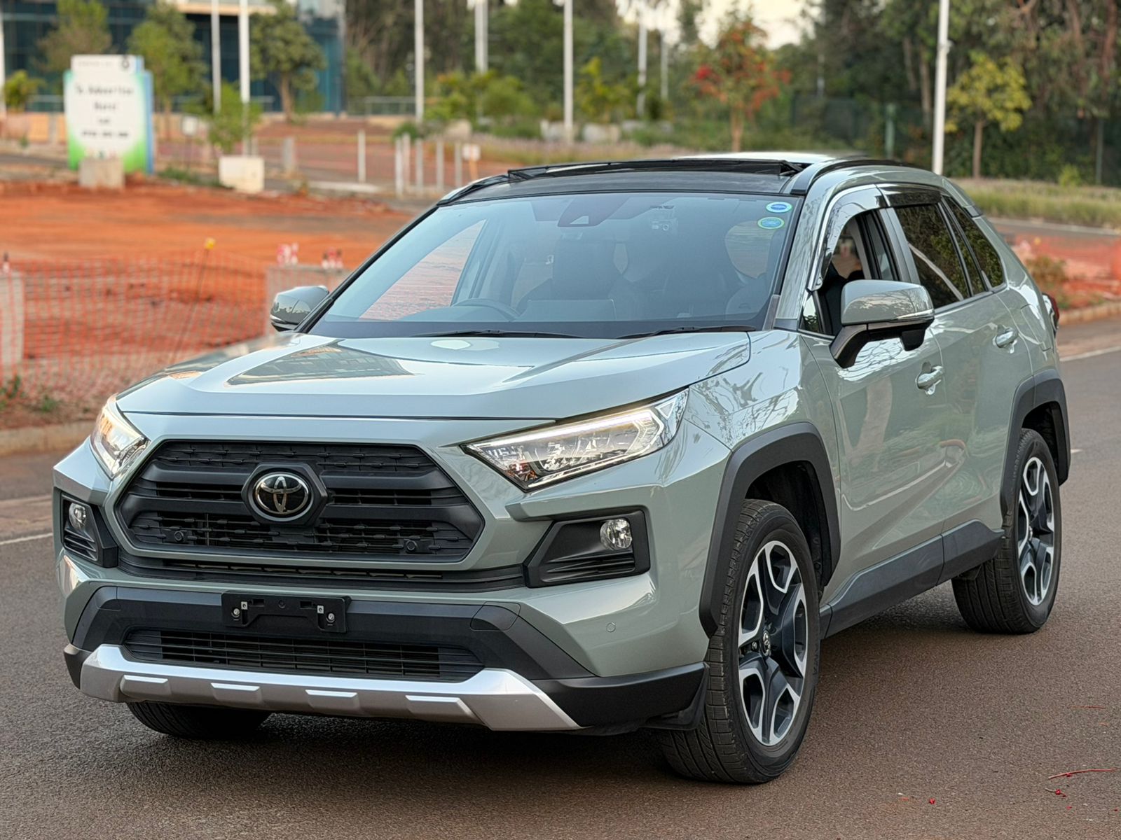 The 2019 Toyota RAV4 Adventure is a rugged yet refined compact SUV powered by a 2.0L petrol engine with AWD and 6-speed automatic transmission, ideal for Kenyan roads blending urban comfort and light off-road capability. This low-mileage unit (36,000 km) features a panoramic sunroof, dark leather seats, advanced safety tech like lane departure assist and blind spot monitoring, and premium amenities including heated/cooled front seats and radar cruise control. The Adventure trim adds bold styling with roof rails and all-terrain tires for enhanced versatility.​