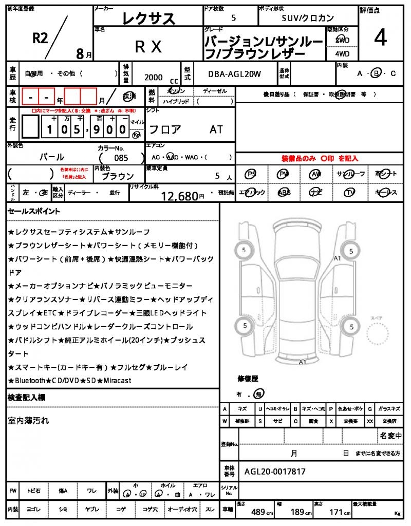 2017 Lexus RX 200t F-Sport 2.0 AWD