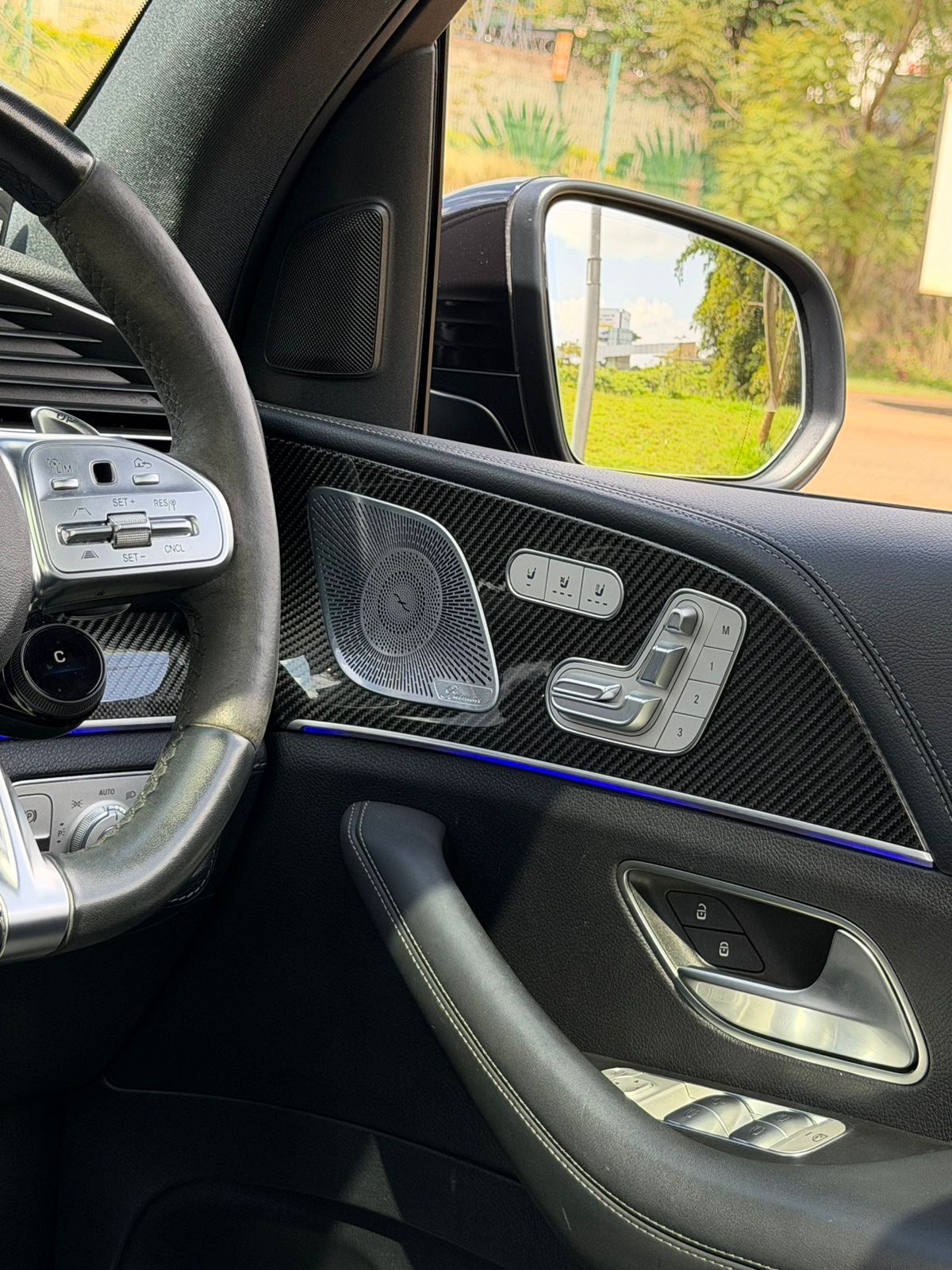 AMG sport steering wheel with paddle shifters.