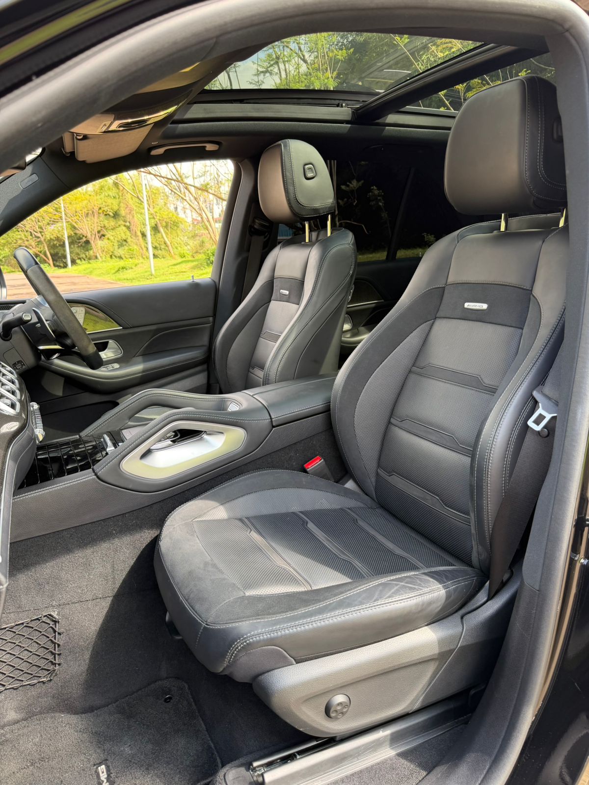 | Interior Features | Black half leather & Alcantara, panoramic sunroof, AMG steering wheel |