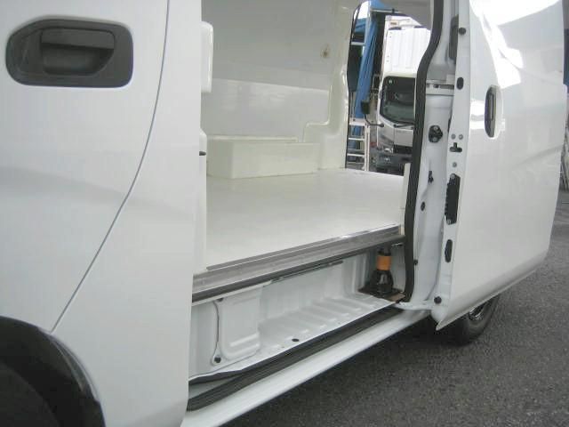 Sliding side doors, rear barn doors, roof rails optional; refrigerated box with vents and insulation panels for efficiency.