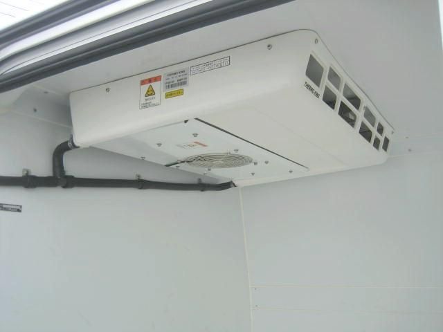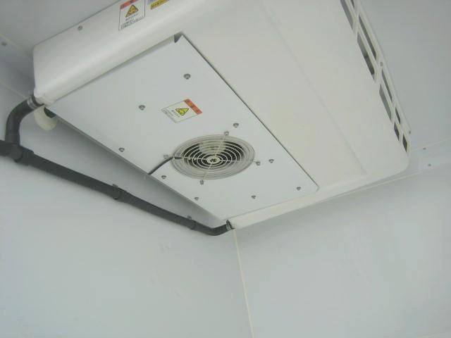 Basic driver-focused cab with vinyl seats for 3, manual AC, power steering; cargo area fully insulated with refrigeration compressor (0-10°C capable), easy-clean floors.