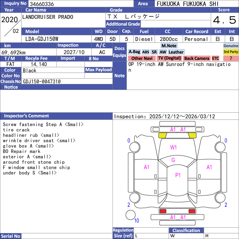 The 2020 Toyota Land Cruiser Prado TX.L Package is a premium midsize SUV powered by a 2.8L turbo-diesel engine, designed for comfort, utility, and off-road capability. This model has traveled 69,692 km, featuring beige leather seats, a sunroof, and a roof carrier for extra practicality. It is equipped with a 4WD system and a 6-speed automatic transmission, offering versatile performance suitable for varied Kenyan terrains.