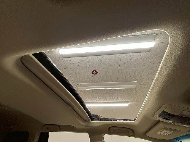 Upscale beige leather interior complemented by panoramic sunroof