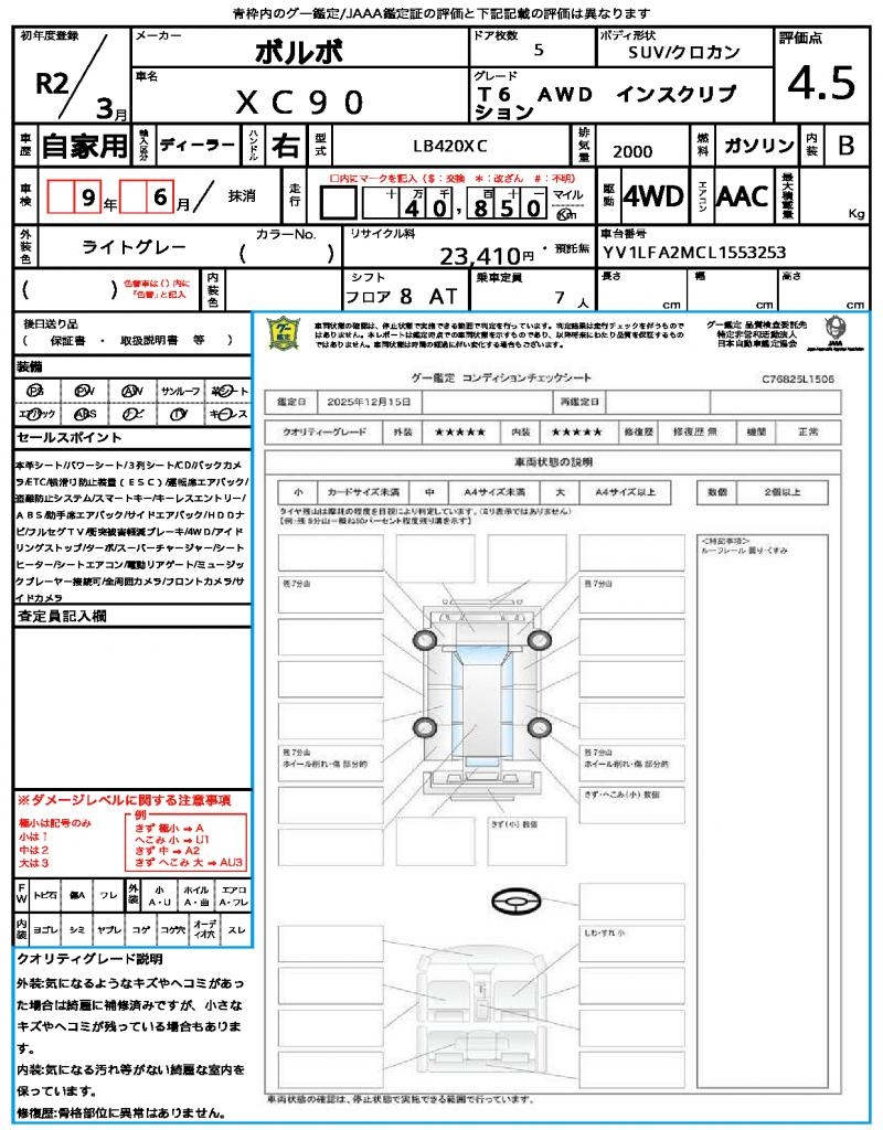 The 2020 Volvo XC90 T6 Inscription AWD is a luxury midsize SUV with a powerful yet efficient 2.0L turbocharged and supercharged petrol engine paired with a mild hybrid system. It offers a perfect blend of performance, comfort, and technology, ideal for families and executive transport. This model has traveled 40,850 km and features bright premium leather seats that enhance the cabin's luxurious ambiance.