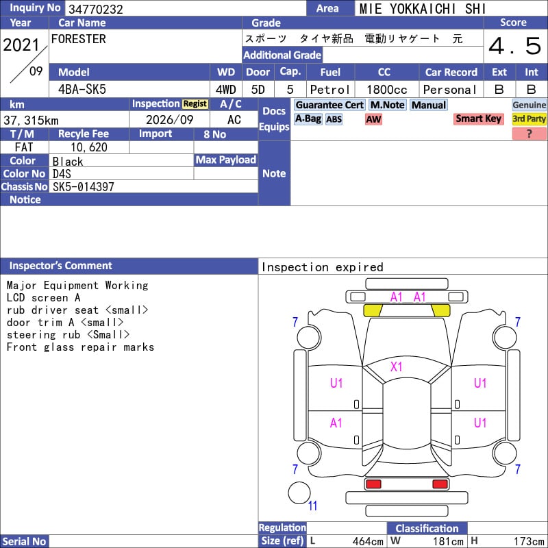 This 2021 Subaru Forester SK5 Sport is a dynamic compact SUV powered by a 1.8L turbocharged petrol engine. With only 37,315 km on the odometer, this unit combines sporty design, everyday practicality, and Subaru's signature all-wheel-drive confidence.
