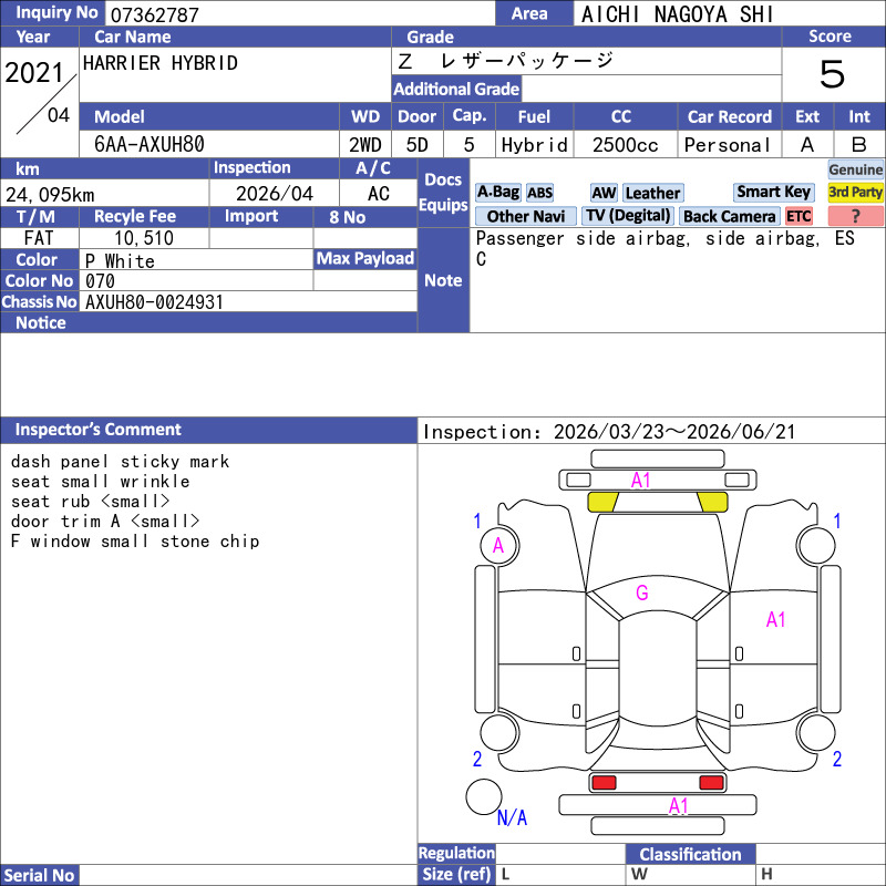 2021 Toyota Harrier Hybrid 2WD 2.5