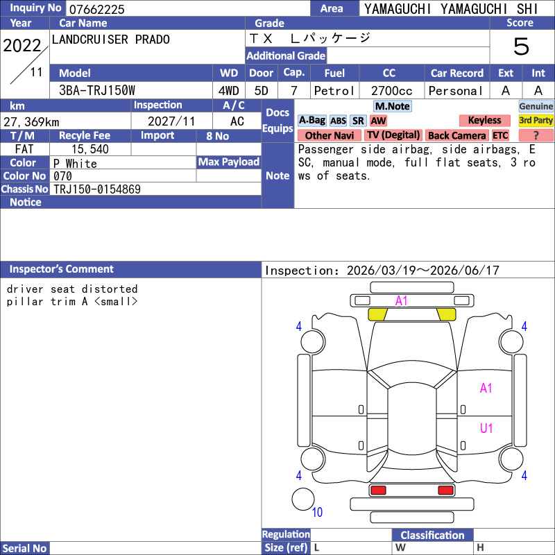 The 2022 Toyota Land Cruiser Prado TX-L, with its practical 2.7L petrol engine and durable 4WD system, presents a reliable, comfortable, and capable SUV choice for families and off-road enthusiasts alike. Its good mileage, excellent condition, and full feature set make it a smart investment for those needing versatility and Toyota’s hallmark durability.