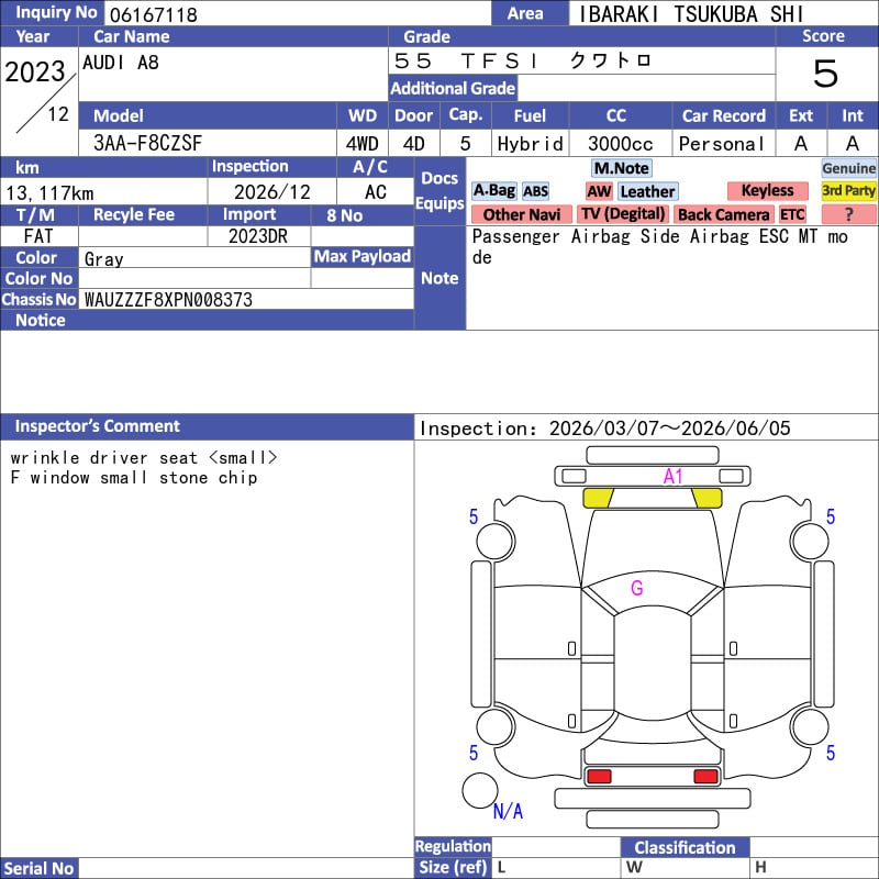The 2023 Audi A8 55 TFSI Quattro is a refined and technologically advanced luxury sedan delivering a balanced mix of performance, comfort, and safety. Its powerful V6 turbo petrol engine, combined with quattro AWD, offers a confident driving experience, while its luxurious interior and cutting-edge features make it an excellent choice in the premium sedan market. Rated 4.6 out of 5 for luxury, technology, and overall value.