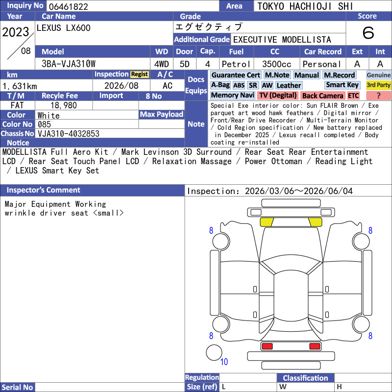 The 2023 Lexus LX 600 Executive 4WD with only 1,631 km and a unique two-passenger rear seat configuration is an exclusive, ultra-luxury SUV designed for discerning buyers who prioritize utmost comfort, advanced technology, and formidable off-road ability. Its executive rear seats transform the cabin into a mobile lounge with exceptional space and amenities, differentiating it from conventional 7-seat SUVs. Coupled with a powerful twin-turbo V6 and cutting-edge suspension and terrain management systems, it delivers both commanding on-road presence and serious off-road prowess. This vehicle is ideal for those who desire a high-end, performance-driven luxury SUV with a focus on personalized rear-seat comfort and prestige.