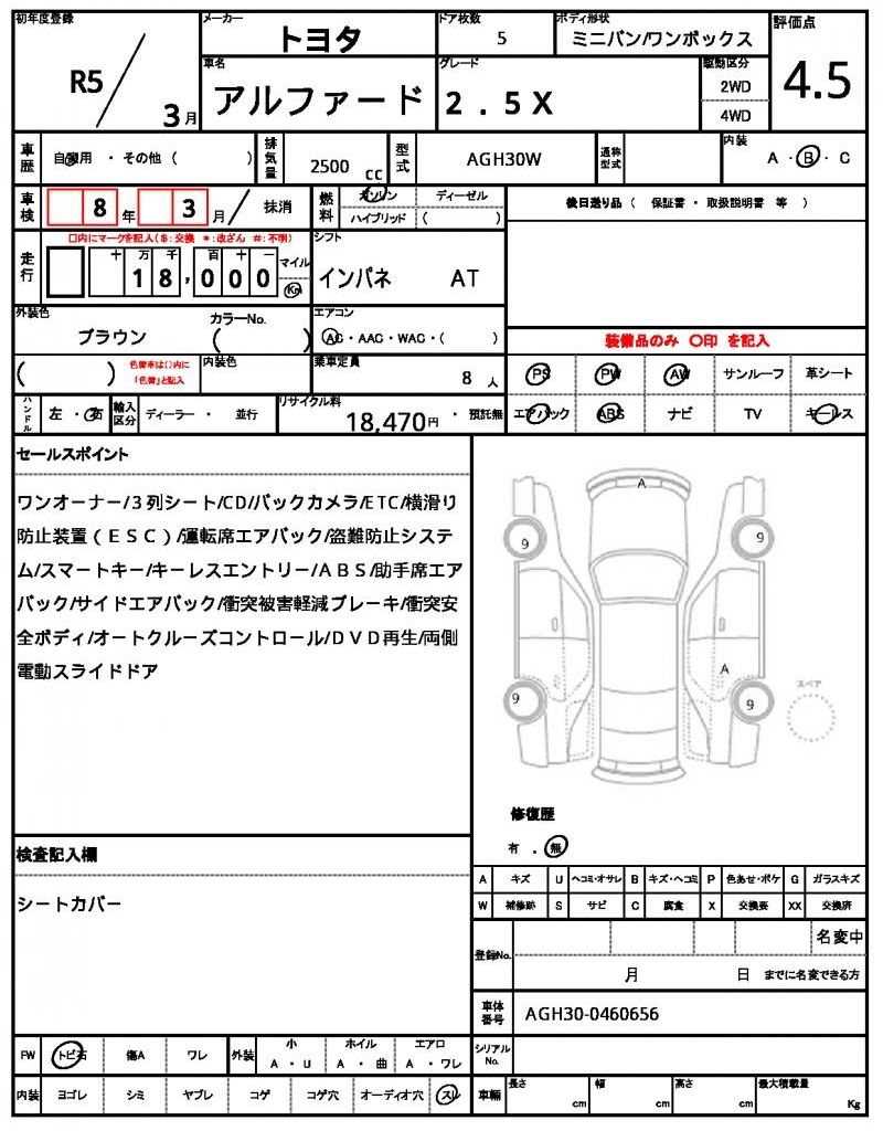 The 2023 Toyota Alphard 2.5X is a premium luxury minivan featuring a 2500 cc inline-4 petrol engine. It has traveled 18,000 km and comes in a brown exterior with a beige interior, equipped with electric sliding doors and a reverse camera for convenience and safety. The vehicle is highly rated for comfort and family-friendly features.