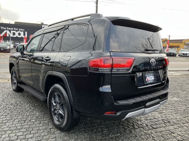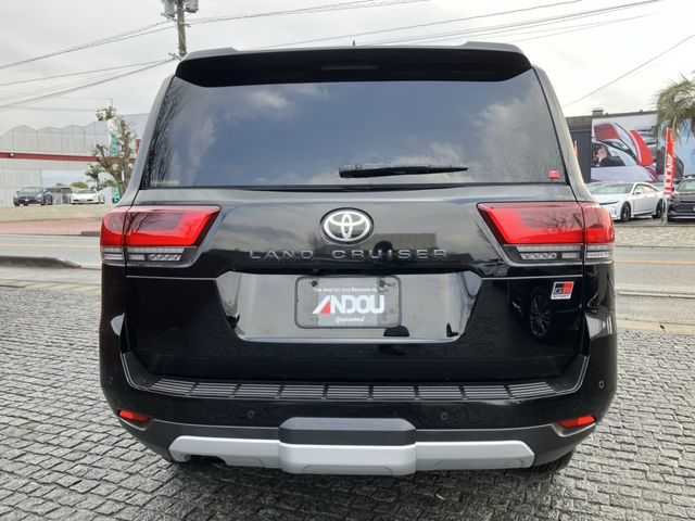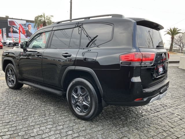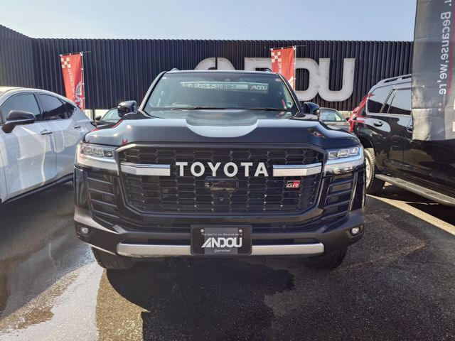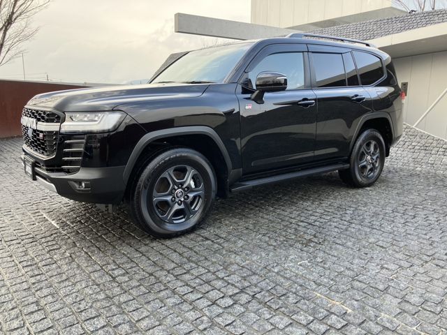 The 2023 Toyota Land Cruiser 300 Series GR Sport is a high-performance luxury SUV powered by a 3300 cc twin-turbo diesel V6 engine. The vehicle has traveled 3,500 km, features a black exterior, and is fitted with GR Sport two-tone leather seats, a sunroof, and a cooler box. It carries a grade of 4.5/B, indicating very good condition.