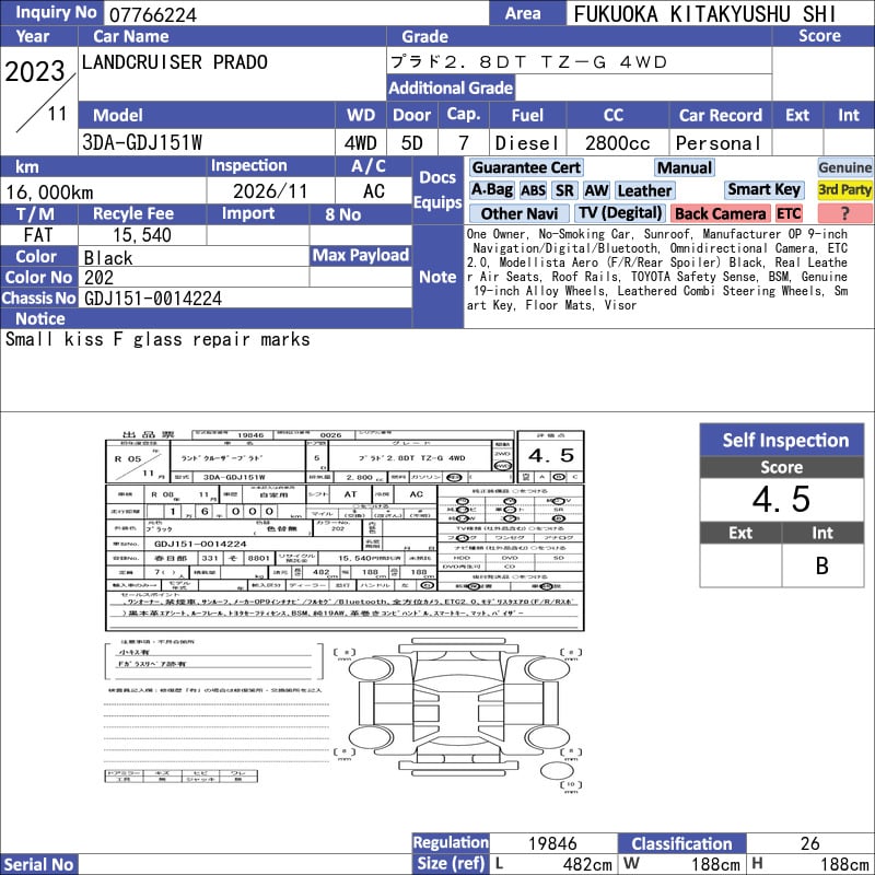 The 2023 Toyota Land Cruiser Prado TZ.G is a premium midsize SUV equipped with a 2.8L turbo-diesel engine that delivers reliable power and efficiency, ideal for both urban and rugged Kenyan terrains. This model has traveled 16,000 km and features a 7-seater configuration with leather seats in black, complemented by a sunroof that enhances natural cabin light and ventilation. The TZ.G trim focuses on luxury, technology, and all-terrain capability, making it a versatile choice for families and adventure seekers.