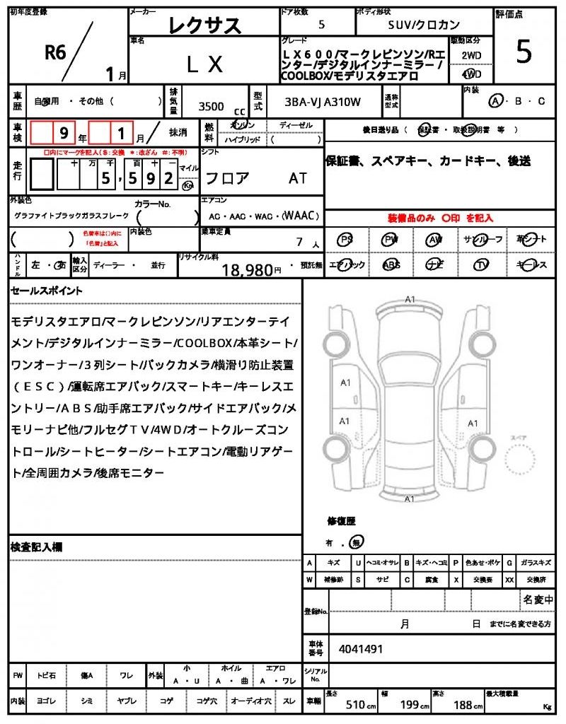The 2024 Lexus LX600 is a flagship full-size luxury SUV powered by a 3.5L twin-turbo V6 petrol engine producing 409 hp and 479 lb-ft of torque. The vehicle has covered just 5,592 km and features a stunning pearl exterior paired with genuine 7-seat brown leather upholstery. This model includes the exclusive Modellista Aero body kit, which enhances its bold and aggressive exterior styling, along with a panoramic sunroof that adds to the cabin's spacious and luxurious feel.