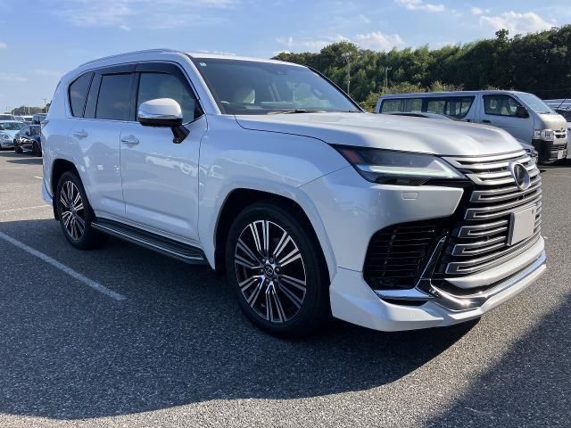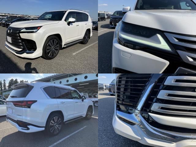 The 2024 Lexus LX600 in pearl is a flagship full-size luxury SUV delivering an impressive balance of power, refinement, and advanced technology. It is powered by a 3.5-liter twin-turbo V6 petrol engine producing 409 horsepower and 479 lb-ft of torque, paired with a 10-speed automatic transmission and full-time AWD system. With only 9,000 kilometers, this Grade 6/A black pearl model comes equipped with a panoramic sunroof, a spacious seven-seat cabin adorned with premium materials, and a suite of safety and convenience features, making it an ideal choice for buyers seeking unmatched luxury and performance.