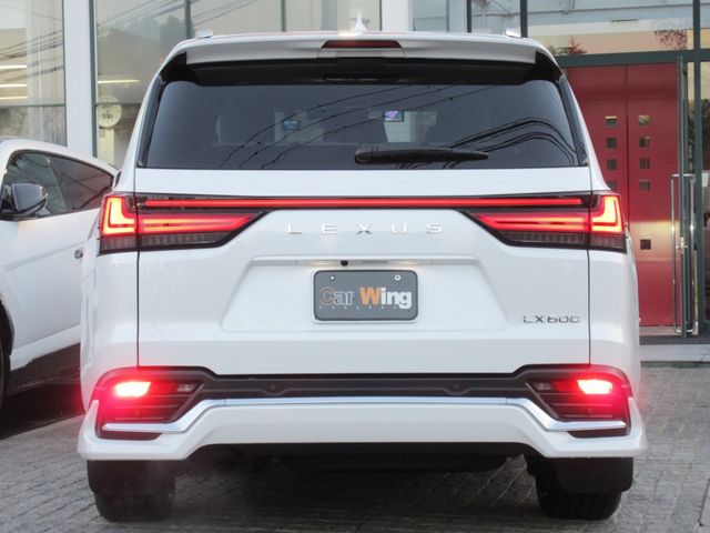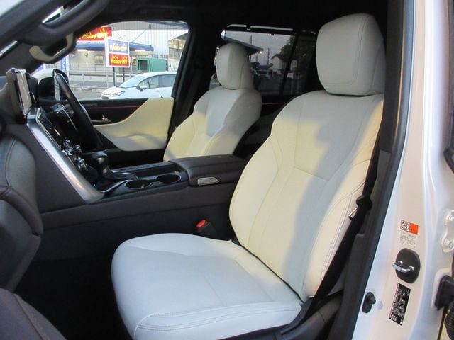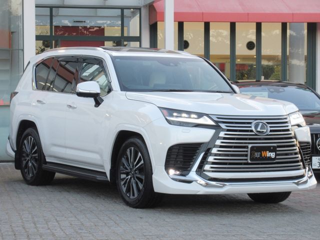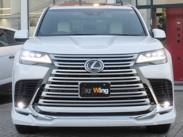The 2024 Lexus LX600 is a flagship full-size luxury SUV powered by a 3.5L twin-turbo V6 petrol engine producing 409 hp and 479 lb-ft of torque. The vehicle has covered just 7,290 km and features a stunning pearl exterior paired with genuine 7-seat brown leather upholstery. This model includes the exclusive Modellista Aero body kit, which enhances its bold and aggressive exterior styling, along with a panoramic sunroof that adds to the cabin's spacious and luxurious feel.