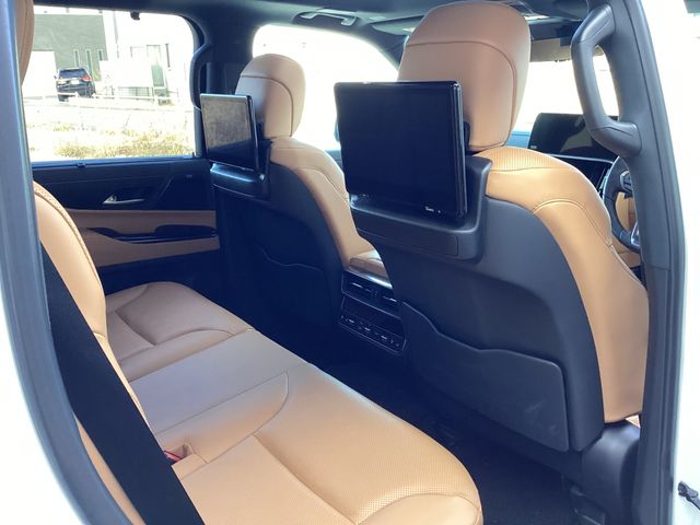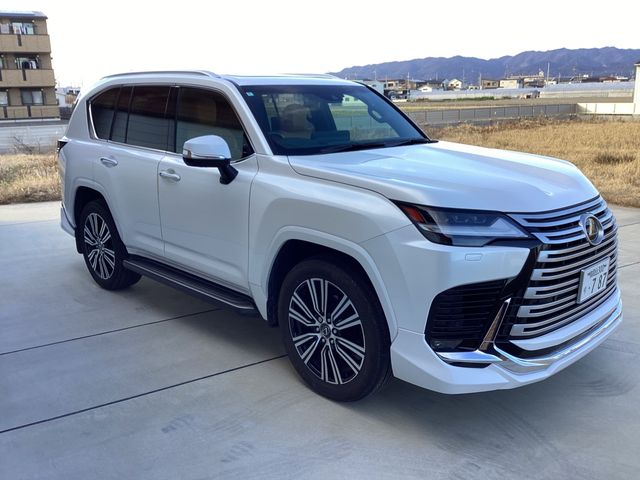 The 2024 Lexus LX600 is a flagship full-size luxury SUV powered by a 3.5L twin-turbo V6 petrol engine producing 409 hp and 479 lb-ft of torque. The vehicle has covered just 19,990 km and features a stunning pearl exterior paired with genuine 7-seat brown leather upholstery. This model includes the exclusive Modellista Aero body kit, which enhances its bold and aggressive exterior styling, along with a panoramic sunroof that adds to the cabin's spacious and luxurious feel.