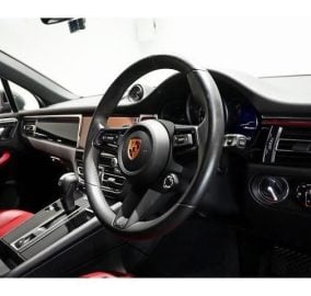 The 2024 Porsche Macan T is a sporty and luxurious compact SUV featuring a 2.0L turbocharged inline-4 petrol engine. With only 9,000 kilometers and a striking red interior, it is graded 5/A, indicating excellent condition. The Macan T combines impressive performance, precise handling, and premium appointments to deliver a dynamic driving experience coupled with everyday usability.