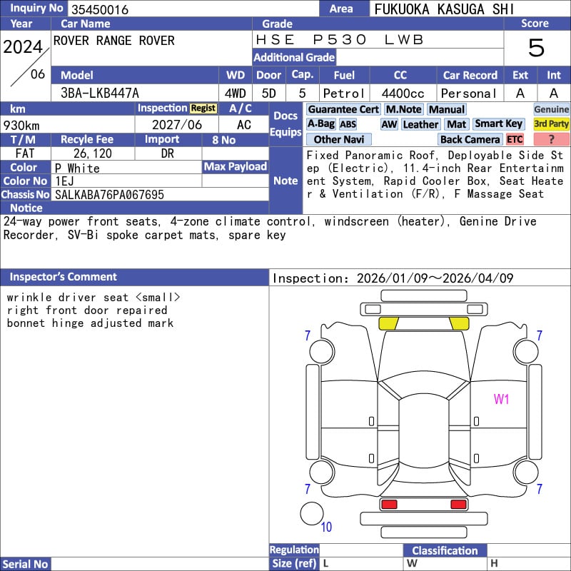 | Dimensions (LxWxH) | 5052 x 2047 x 1870 mm |