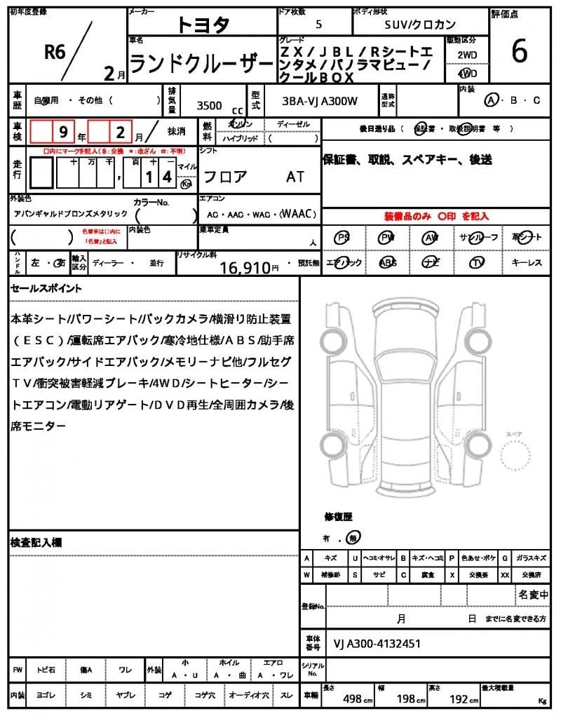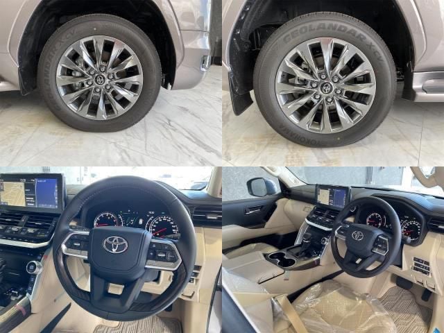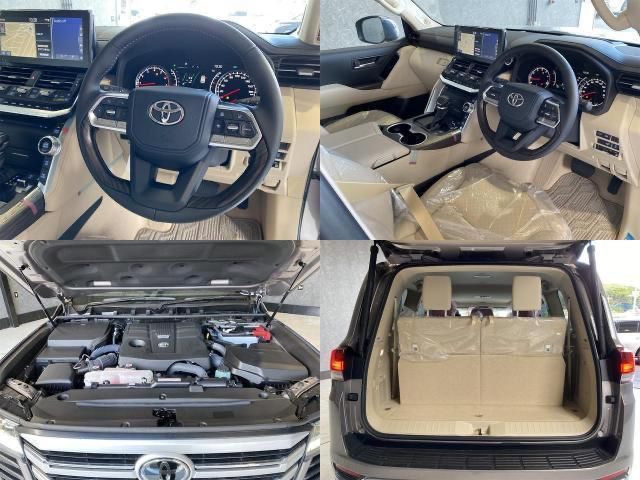 The 2024 Toyota Land Cruiser ZX 300 Series is a flagship full-size luxury SUV featuring a powerful 3500 cc twin-turbo V6 petrol engine. This brand-new vehicle has only 14 km traveled and comes in an elegant Bronze Metallic exterior with a beige interior, highlighted by premium features including a sunroof and a cooler box for added convenience. The vehicle is graded 6/A, denoting immaculate condition.