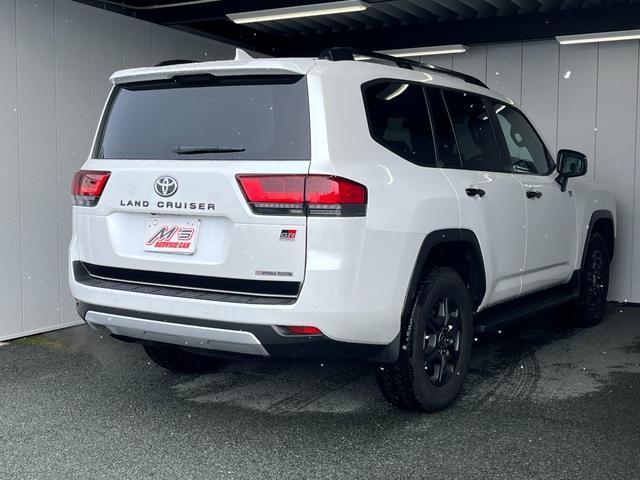 The 2024 Toyota Land Cruiser ZX GR Sport is a luxury full-size SUV featuring a 3500 cc twin-turbo petrol V6 engine with 21,400 km traveled. This model comes with a sleek black exterior and matching black interior and sunroof and carries a grade of 4.5/B, indicating very good condition.