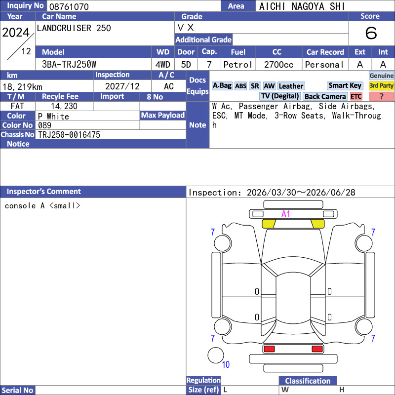 | Model | Land Cruiser Prado VX First Edition TRJ250W |