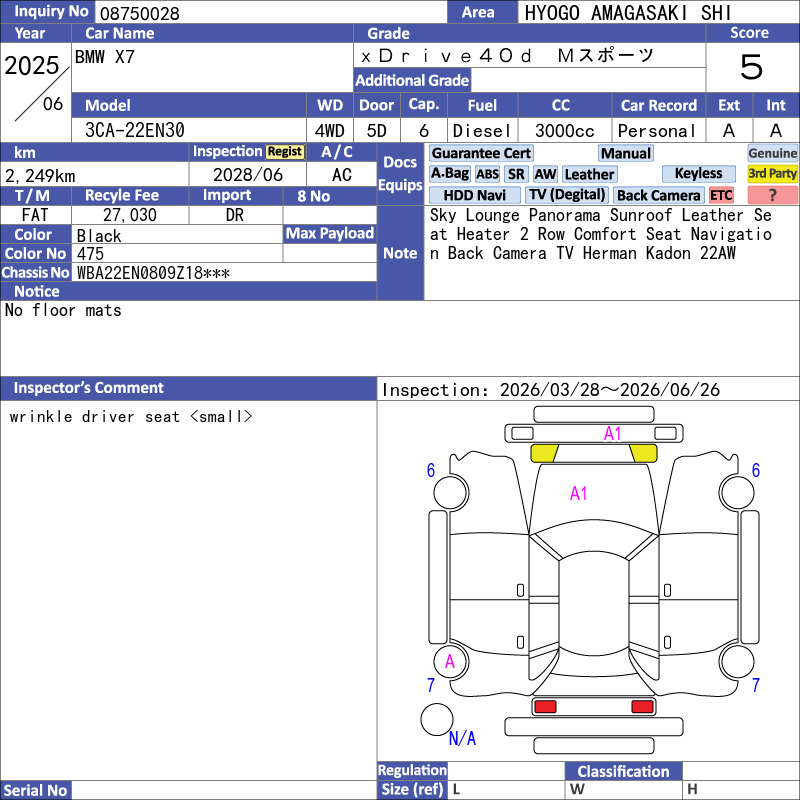 The 2025 BMW X7 xDrive40d M Sport is a luxurious full-size SUV that blends powerful diesel performance with sporty styling and advanced technology. Featuring a 3.0-liter TwinPower turbocharged inline-six diesel engine producing 335 horsepower and 700 Nm of torque, it offers smooth and dynamic driving performance. With only 2,249 kilometers logged, this pearl-finished model comes equipped with the panoramic Skylounge sunroof, a spacious 7-seater configuration, and the M Sport package, delivering enhanced aesthetics and sportier handling.