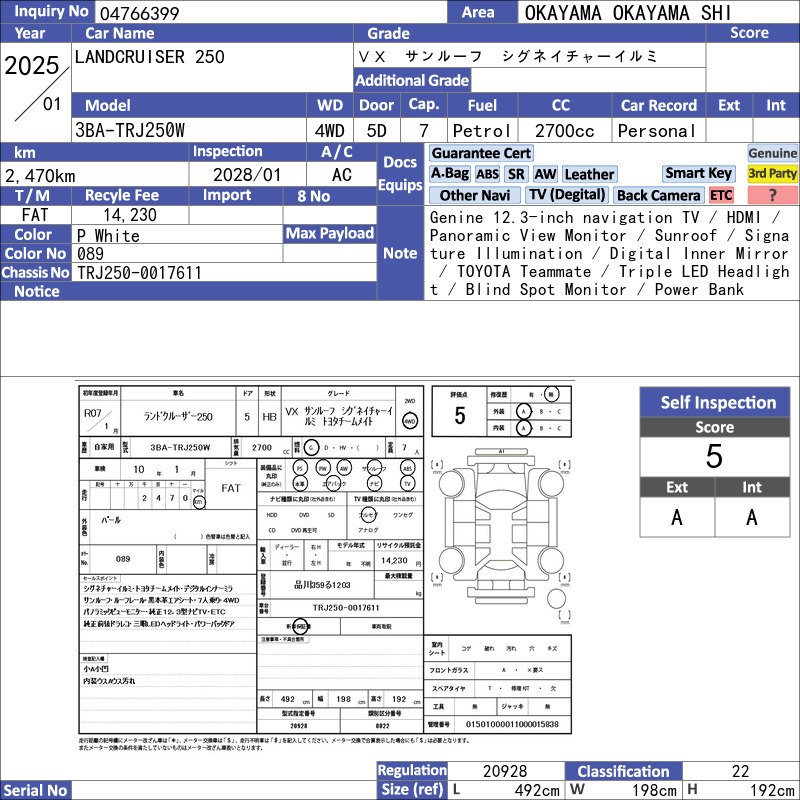| Model | Land Cruiser Prado VX First Edition TRJ250W |