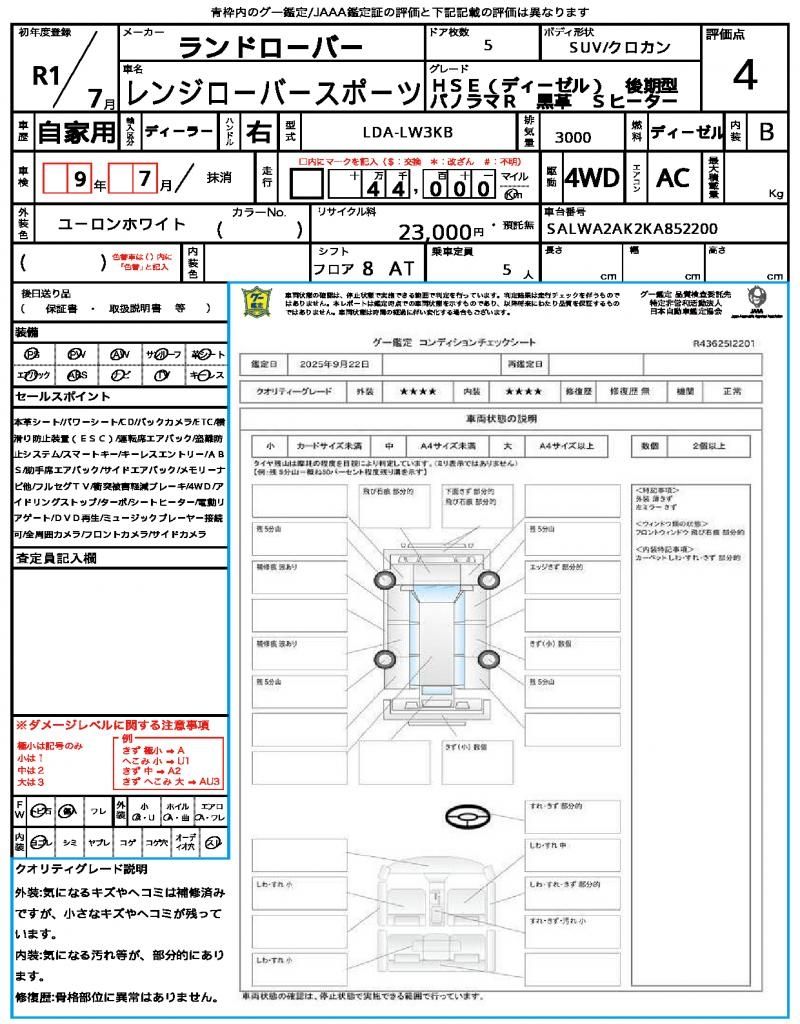 | Model | 2019 Range Rover Sport HSE Diesel |