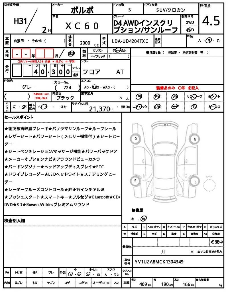 | Model | 2019 Volvo XC60 D4 Inscription |