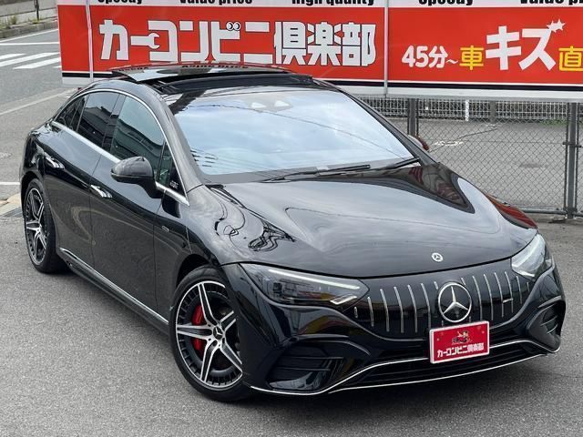 The 2024 Mercedes-Benz EQE 53 AMG 4MATIC+ is a high-performance luxury all-electric sedan featuring AMG tuning with aggressive styling, a black exterior, and a panoramic sunroof. It has a dual electric motor setup with all-wheel drive and an impressive driving range, traveling 5,400 km in near-new condition.