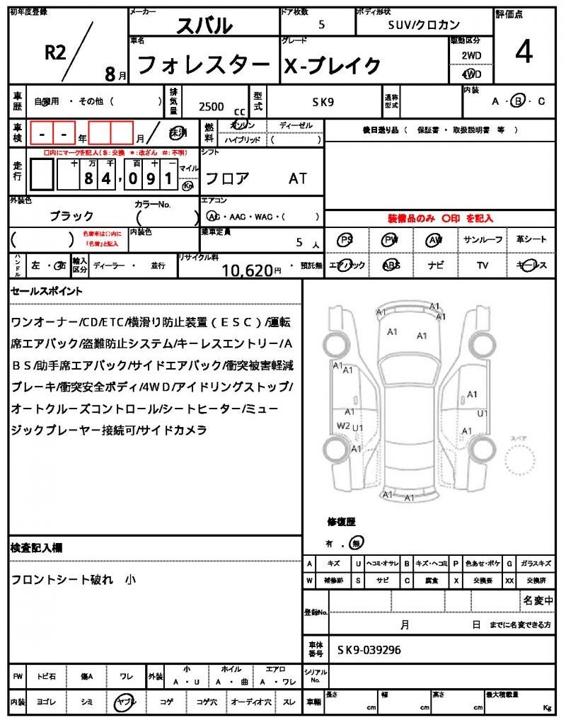 | Safety Features | Subaru EyeSight, blind spot, 360 camera, airbags |
