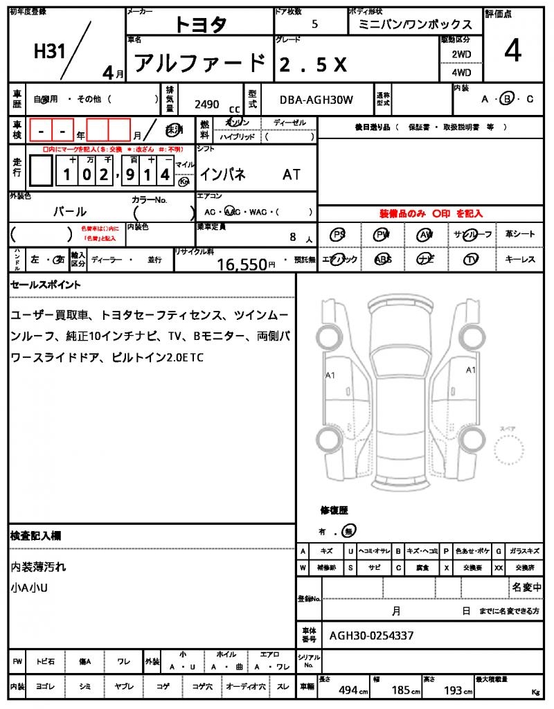 2019 Toyota Alphard 2.5X