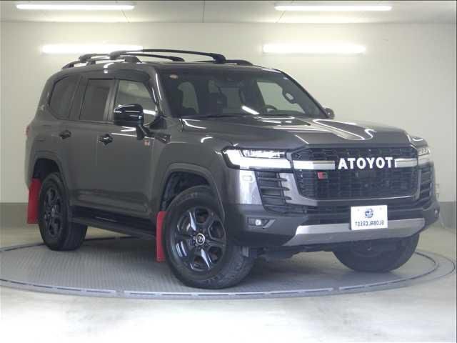 The 2023 Toyota Land Cruiser 300 Series GR Sport is a high-performance luxury SUV powered by a 3300 cc twin-turbo diesel V6 engine. The vehicle has traveled 15,600 km, features a black exterior, and is fitted with GR Sport two-tone leather seats, a sunroof, and a cooler box. It carries a grade of 4.5/B, indicating very good condition.