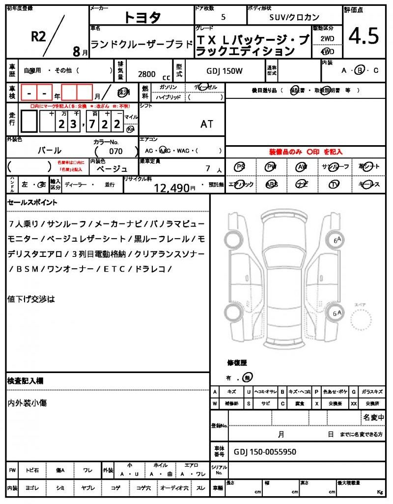 The 2020 Toyota Land Cruiser Prado TX.L Package is a premium midsize SUV powered by a 2.8L turbo-diesel engine, designed for comfort, utility, and off-road capability. This model has traveled 23,722 km, featuring beige leather seats, a sunroof, and a roof carrier for extra practicality. It is equipped with a 4WD system and a 6-speed automatic transmission, offering versatile performance suitable for varied Kenyan terrains.