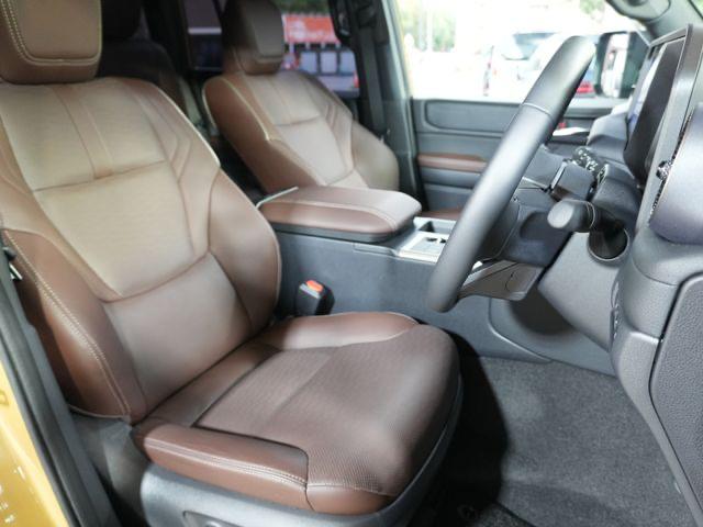 Rich brown leather seats with extensive adjustability and heating options.